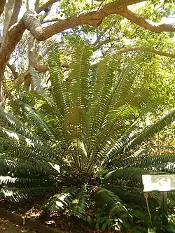 It is a cycad with an erect stem, up to 6 m tall and with a diameter of 40–70 cm, rarely with secondary stems originating from shoots that arise at the base of the main stem.