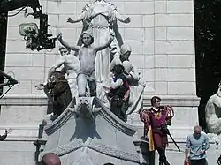 The first scene in New York, which features Giselle emerging from a manhole in the middle of Times Square, was filmed on location in the center of the square. Because of the difficulties in controlling the crowd while filming in Times Square, general pedestrians were featured in the scene with hired extras placed in the immediate foreground.[29] Similarly, a crowd gathered to watch as James Marsden and Timothy Spall filmed their scenes in Times Square.[30] However, the scene Lima found the most challenging to shoot was the musical number, "That's How You Know", in Central Park. The five-minute scene took 17 days to finish due to the changing weather, which allowed only seven sunny days for the scene to be filmed.[18] The filming was also hampered at times by Patrick Dempsey's fans.[17] The scene was choreographed by John O'Connell, who had worked on Moulin Rouge! beforehand, and included 300 extras and 150 dancers.[18]