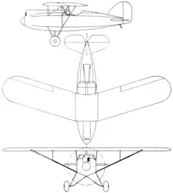 The aircraft has conventional landing gear, an open cockpit, strut braces and a parasol wing with swept sections. The fuselage is constructed of welded steel tubing with doped aircraft fabric covering.[3][4]
