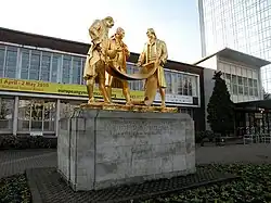 Boulton, Watt and Murdoch, a 1956 statue on Broad Street in Birmingham; the SI unit of power is the watt, most commonly found as the kW, a replacement for the imperial measurement of horsepower.
