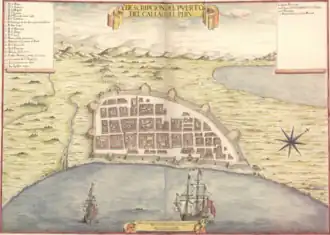 - ^ The Armada del Mar del Sur was a naval institution created in 1580, based in the port of Callao, which had the mission of protecting the trade route of the Spaniards in the American Pacific.[26]