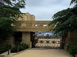 The house's main entrance gate, looking toward the motor court