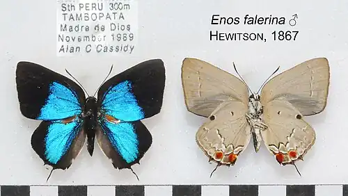 Enos falerina is a butterfly in the family Lycaenidae. It is found in the Guianas, the Amazon region, Colombia, Peru and Guatemala.