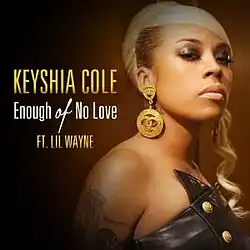 "Enough of No Love" is a song recorded by American R&B singer-songwriter Keyshia Cole, released by Geffen and Interscope Records on July 2, 2012 as the lead single from her fifth studio album, Woman to Woman. It contains a guest appearance from American rapper Lil Wayne, who co-wrote the song along with Cole, Elijah Blake, and its producer, Harmony Samuels.