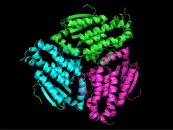 - ^ a b Mursula AM, Hiltunen JK, Wierenga RK (January 2004). "Structural studies on delta(3)-delta(2)-enoyl-CoA isomerase: the variable mode of assembly of the trimeric disks of the crotonase superfamily". FEBS Lett. 557 (1–3): 81–7. Bibcode:2004FEBSL.557...81M. doi:10.1016/S0014-5793(03)01450-9. PMID 14741345.