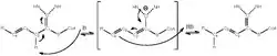 Moreover, a glutamate residue located next to body cavities filled with water molecules and lined with hydrophobic or apolar side chains has also been identified as a part of the catalytic site. In its deprotonated form, the glutamate can act as a base and remove a proton from the acyl-CoA intermediate. The body cavities aid in rearranging the glutamate side chain to retain the proton and later deliver it back to the acyl-CoA, on a different carbon position.[4]