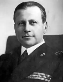 In 1930 he married Miss Nerina Varvaro and attended the naval warfare school, at the end of which he returned to sea as commander of the destroyer Emanuele Pessagno and then of the 5th Torpedo Boat Squadron, with flag on Giuseppe Cesare Abba. He was then transferred to the office of the Chief of Staff of the Navy and in 1934 he was promoted to captain, taking command of the heavy cruiser Zara from 16 September 1934 to 14 August 1935. At the outbreak of the Second Italo-Ethiopian War he was once again sent to the Red Sea, where he helped with the logistics organization, and then took command of the torpedo boat group based in Massawa. He was part of the retinue of Princess Yolanda of Savoy when she made a visit to Eritrea and the Indian Ocean on the hospital ship Cesarea. In late 1938 he was sent to Spain as commander of the Italian naval mission, set up at the outbreak of the Spanish Civil War, which had the dual purpose of supporting the Corpo Truppe Volontarie and acting as a liaison with the Nationalist Navy of Generalissimo Francisco Franco. He fought personally in the battle of Catalonia, and was among the first to enter Barcelona in January 1939, earning another Silver Medal of Military Valor. As the war was ending in favor of the Nationalists, he performed diplomatic tasks by forging ties between the two countries, and after the war he was promoted to rear admiral and became naval attaché at the Italian Embassy in Madrid.[1][2]