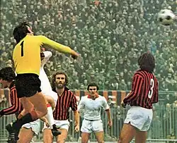 Born in Pontremoli, at club youth level, Albertosi represented the Spezia youth academy for a season, before making his debut in Serie A at the age of 18 for Fiorentina on 18 January 1959, playing in a goalless draw with A.S. Roma. Despite heavy competition from Giuliano Sarti during his first five seasons at the Tuscan club, where he initially mainly served as a back-up, Albertosi represented Fiorentina until 1968, winning a Mitropa Cup in 1966, a European Cup Winners' Cup in 1961 (the first ever edition of the competition), and 2 Coppa Italia trophies in 1961 and 1966. He later transferred to Luigi Riva's side, Cagliari Calcio, where he helped to win Cagliari's legendary first and only Scudetto during the 1969–70 season, his second season with the Sardinian club, recording what was at the time the lowest number of goals conceded in a 16-team Serie A campaign. He later transferred to A.C. Milan in 1974, where he remained for six years, and he won yet another Serie A championship medal with the club during the 1978–79 season, along with another Coppa Italia during the 1976–77 season.[1][3][4][5][6] With 233 appearances for the club, he is Milan's fifth-most capped keeper of all time, behind only Christian Abbiati (380), Sebastiano Rossi (330), Dida (302), and Lorenzo Buffon (300).[7]
