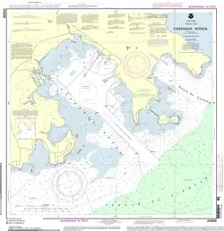 Ensenada Honda is about 4.6 square miles in area,[5] but with a maximum depth of 40 1/2 foot, it is the second deepest bay in Puerto Rico after San Juan Bay.[6] It flanks the open water passage known as "Radas Roosevelt" in the Vieques Strait and sits near the trafficked "Pasaje de Medio Mundo" (English: Middle of the World Passage).