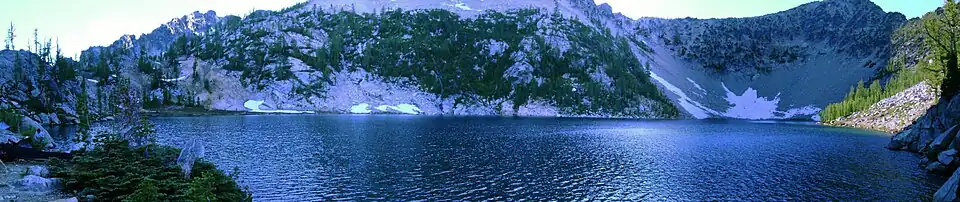 In its final miles, the Entiat River turns east to join the Columbia River at Columbia river mile 483.7,[4] just south of the small city of Entiat. At this point the Columbia River is a reservoir created by Rocky Reach Dam. The reservoir's name is Lake Entiat. Fern Lake is located at the headwaters of the North Fork Entiat. Entiat Glacier, located in a cirque on the eastern side of Mount Maude and Seven Fingered Jack, is the headwaters of the Entiat River.