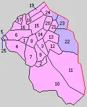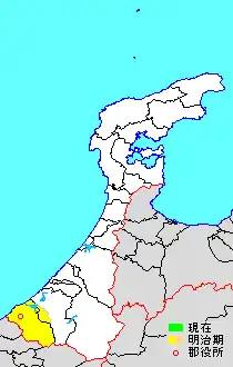 * yellow - areas formerly within the district borders during the early Meiji period