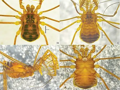- ^ Selden, Paul A.; Dunlop, Jason A.; Giribet, Gonzalo; Zhang, Weiwei; Ren, Dong (October 2016). "The oldest armoured harvestman (Arachnida: Opiliones: Laniatores), from Upper Cretaceous Myanmar amber". Cretaceous Research. 65: 206–212. doi:10.1016/j.cretres.2016.05.004. ISSN 0195-6671.