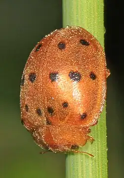 Epilachna is a genus of beetle in the family Coccinellidae, including several pest species, such as the Mexican bean beetle (Epilachna varivestis).[1][2][3][4][5]