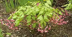 Epimedium × rubrum, known as red barrenwort, is a species of perennial flowering plant in the family Berberidaceae, cultivated in gardens. It is considered to be a hybrid between E. alpinum and E. grandiflorum (hence the symbol ×).[3] The Royal Horticultural Society has given it the Award of Garden Merit (AGM).[2][4]