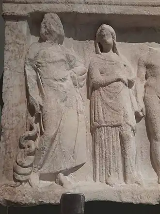 Epigraphical evidence suggests that Epione was a cultic figure in Athens, Epidauros, Kos, and Pergamon.[1] Asclepius and Epione both had marble statues in Argolis, where Asclepius was widely worshipped.