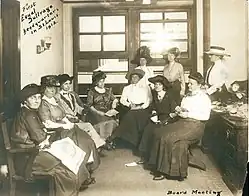 During World War I, the Equal Suffrage League combined their efforts towards suffrage with war efforts. They protested the repeal of the Federal Child Labor Law and investigated the high cost of milk, among other actions.[1] President Woodrow Wilson supported suffrage more after their display of patriotism during the war.[5]