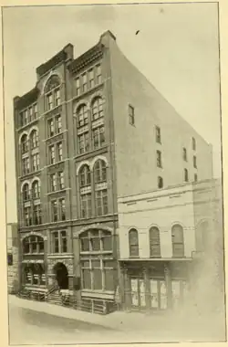 In 1886, he moved to Atlanta. The following year, he helped found the Traders Bank of Atlanta, which was chartered on October 24, 1887, and officially opened November 1, 1888. Other founders included Hugh T. Inman and Clifford Anderson.[1] Gould had constructed the bank's headquarters in 1887 on Decatur Street.[1][2] Known as the Traders Bank Building, it was the first office-building skyscraper in Atlanta, rising 7 stories.[3] In 1890, following the renaming of the Traders Bank, the building was known as the Gould Building.[1] Additionally, Gould also had a home constructed for himself in Inman Park. Located on Edgewood Avenue, it was known as "Gould's Marble Palace" because of the Georgia marble used in the building's construction.[1][2]