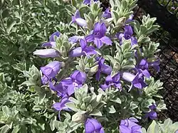 Eremophila hygrophana, also known as the blue emu bush,[2] is a flowering plant in the figwort family, Scrophulariaceae and is endemic to Australia. It is an erect, compact shrub with crowded, grey leaves and violet to purple flowers and is found in South Australia and Western Australia.