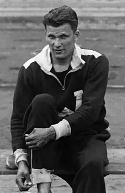 Wennström reached his peak in 1929, consistently running under 15 seconds and winning another Swedish national title;[3][4] finally on 25 August, in a dual meet against Norway at Stockholm, he broke the world record with his time of 14.4.[4] Although a number of other athletes, starting with Earl Thomson in 1920, had run the slightly shorter 120 yd (109.7 m) hurdles in 14.4, Wennström was the first to do so over the metric distance.[4] There were some doubts about the validity of Wennström's mark, with wind assistance and unreliable clocks cited as possible factors in it,[4] but the International Amateur Athletic Federation, responsible for officially ratifying world records, found no problems with the time and accepted it.[4][5]