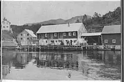 The quay in Gjølanger today. The old buildings are gone, the wooden structure built by Lea is replaced by a concrete construction. Today there is an aquaculture plant. 2002.