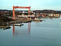 The Eriksberg Crane (Swedish: Eriksbergskranen) is a full gantry crane in the Eriksberg district of Gothenburg, part of the former Eriksberg shipyard. It is a listed building, and is considered to be one of the city's main landmarks and an important relic of its industrial and maritime heritage.