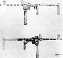 From the version 'EMP 36' of ERMA the SMG 'MP 38' and the following model 'MP 40' had been developed under the guidance of Vollmer, and been accepted by the German Wehrmacht, been put into production.[2] In 1943 another SMG had been constructed by the 'ERMA-Werke', the 'Erma EMP 44', a very simplified Machine Pistol, which could have been manufactured with speed and in great numbers. Such a crudely designed firearm was not approved by the Wehrmacht at that time. Later reconsiderations on the viability for a setup to manufacture the firearm led to nowhere, although there had been certain demand by the end of the war. Similar designs for such simple SMGs had been met with success and these were issued in numbers to the Soviet army (PPS submachine gun) and the British (Sten gun), to be used effectively for decades.