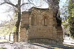 The Ermita de San Pelayo y San Isidoro (English: Hermitage of Saint Pelagius and Saint Isidore) is a ruined Romanesque church, originally in the city of Ávila, Spain. It was built outside the city walls, in front to the Gate of Malaventura in the south side of the Walls. In Ávila, there remains an area known as the Atrium of San Isidro. After the Spanish confiscation, it was moved to Madrid, where it had different locations. Its remains finally found accommodation in the Buen Retiro Park in central Madrid.[1]