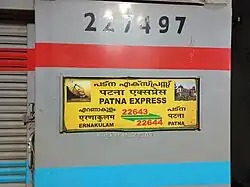 Ernakulam–Patna SF Exp Train Board