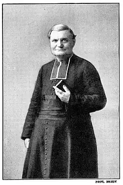 Jouin was born in 1844 in Angers in a family of Catholic artisans. His father died when he was four, and he was sent to a novitiate of the Dominican Order to be educated. From there, he moved to the seminary of Angers and was ordained as a priest in 1868.[2] From Angers, he moved to Paris in 1875, where he served as a parish priest until the end of his life.[3] He strongly criticized the anti-clerical measures introduced by the government of Émile Combes, and was sentenced in 1907 to a fine for his writings regarded as subversive.[3] He attributed the incident to Freemasonry and joined several anti-Masonic organizations before founding his own.[2]