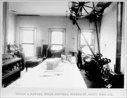 In 1895, at 25 years old, Finley and his fellow partners, Grant Richards and Charles O. Dunbar, founded The Evening Press, a daily newspaper in Santa Rosa.[7] Two years later, in 1897, the publishing firm expanded to include Thomas Larkin Thompson's Sonoma Democrat and Daily Democrat newspapers, merging the trio as the The Press Democrat.[8]