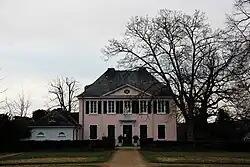 Ernst Moritz Arndt had the villa built from January 1819 at the latest[2] in a wine-growing area outside the city walls of the time.[3] The builder had been appointed professor of modern history at the newly founded and nearby Rheinische Friedrich-Wilhelms-Universität Bonn in Bonn in 1818 and had acquired two vineyards on a hill directly on the Rhine in the same year. The Royal Prussian Building Inspector Friedrich Waesemann was engaged as architect. The Arndt family moved into the house as early as October 1819, even before the interior work was completed the following February and the pink paint was finished in September 1820.[2] Arndt lived in the villa until his death in 1860. Since 1867, the building has been owned by the city of Bonn.[3]