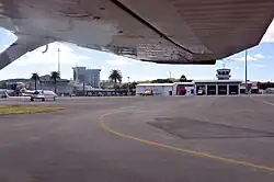 Eros Airport or Windhoek Eros Airport (IATA: ERS, ICAO: FYWE) is an airport serving Windhoek,[3] the capital and largest city of Namibia. It is located in the Khomas Region, about 5 km (3 mi) south of Windhoek's central business district, and has been a secondary hub for Air Namibia.[3][6]
