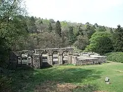 To the north of the hall is a small shrine or chapel, erected by the Grimshawe family to the memory of Miss Dolores de Ybarguen,[7] a Spanish aristocrat who was the teacher at the estate school and governess to the Grimshaw family and who died on a visit to Lourdes. The shrine is still regularly used for private acts of devotion, intercession and remembrance.