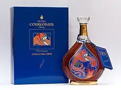 Two years before his death, Erté created seven limited edition bottle designs for Courvoisier to show the different stages of the cognac-making process, from distillation to maturation.[12] In 2008, the eighth and final set of the remaining Erte-designed Courvoisier bottles, containing Grande Champagne cognac dating back to 1892, was released and sold for $10,000 apiece.