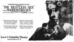 In 1925, Louis B. Mayer brought him to Hollywood to design sets and costumes for the silent film Paris. There were many script problems, so Erté was given other assignments to keep him busy. Hence, he designed for such films as Ben-Hur, The Mystic, Time, The Comedian, and Dance Madness. In 1920 he designed the set and costumes for the film The Restless Sex starring Marion Davies and financed by William Randolph Hearst.