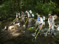 The hatchery has begun to play a role in the long-term preservation and restoration of threatened and endangered species in the southeastern United States, partnering with other agencies and organizations to preserve and restore freshwater mussels, crayfish (infraorder Astacidea), lake sturgeon (Huso fulvescens), and the southern Appalachian brook trout, a strain of brook trout that is smaller than and genetically distinct from brook trout found farther north.[6] The hatchery lists its "featured species" as the rainbow trout, the brook trout, and five mussels: the Alabama lamp mussel (Lampsilis virescens), Appalachian elktoe (Alasmidonta raveneliana), round hickorynut (Obovaria subrotunda), oyster mussel (Epioblasma capsaeformis), and Cumberlandian combshell (Epioblasma brevidens).[7] The hatchery also is involved in work to preserve the snuffbox mussel (Epioblasma triquetra).[6]
