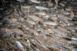 The hatchery primarily stocked fisheries in eastern Tennessee, western North Carolina, and three counties in Virginia. From the early 1900s into the 1940s, the hatchery raised no fewer than 16 species of fish, including brook trout, rainbow trout, brown trout (Salmo trutta), lake trout (Salvelinus namaycush), bluegill (Lepomis macrochirus), catfish (order Siluriformes), largemouth bass (Micropterus nigricans), smallmouth bass (Micropterus dolomieu), rock bass (Ambloplites rupestris), crappie (genus Pomoxis), yellow perch (Perca flavescens), goldfish (Carassius auratus), silver shiners (Notropis photogenis), whitetail shiners (Cyprinella galactura), golden shiners (Notemigonus crysoleucas), and northern hogsuckers (Hypentelium nigricans).[3]