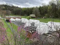 The Unicoi County Heritage Museum is on the grounds and has nine rooms open to the public, each themed to showcase an aspect of Unicoi County's history.[4] The grounds have picnic tables and picnic shelters, and picnicking and dog-walking are permitted. The hatchery has a 0.5-mile (0.8 km) nature trail behind the Unicoi County Heritage Museum that is open to the public for hiking and marked with tree identification tags; the hike takes about 30 minutes.[4][8] A wide variety of birds reside on or visit the hatchery property, and the grounds and nature trail offer opportunities for birdwatching, other wildlife observation, and wildlife photography. The public also may observe beehives and pollinator gardens on the hatchery grounds.[8][9][10]