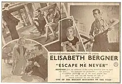 Escape Me Never is a 1935 British drama film directed by Paul Czinner, produced by Herbert Wilcox, and starring Elisabeth Bergner (recreating the role of Gemma as she created it onstage in New York and London), Hugh Sinclair and Griffith Jones.[3][4] The score is by William Walton with orchestration by Hyam Greenbaum.[5] Bergner was nominated for the Oscar for Best Actress for her performance, but lost to Bette Davis. British readers of Film Weekly magazine voted the 1935 Best Performance in a British Movie to her.[6] The film is an adaptation of the play Escape Me Never by Margaret Kennedy, which was based upon her 1930 novel The Fool of the Family. That book was a sequel to The Constant Nymph, which was also about the Sanger family of musical geniuses, but there is a disjunct among the books and the films: the Sanger brothers are never mentioned in the 1943 film version of The Constant Nymph. Another film adaptation of Escape Me Never was made in 1947 by Warner Bros.