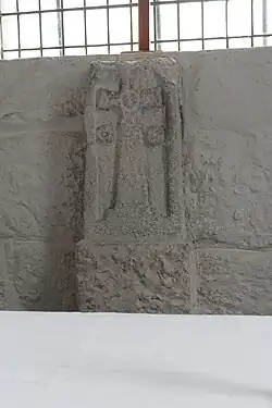 In the restoration of 1880 were found a number of delicately carved fragments of cross-shafts[4] of the high quality commonly assigned to the Hexham school. They were found built into the gables, presumably during earlier restorations.