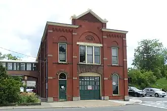 Esek Bussey Firehouse, now known as Engine Company 8 or Pumper Number 8, is a historic fire station located at Troy in Rensselaer County, New York. It was built in 1891–1892 and is a two-story, red brick building. It features a corbeled brick frieze, flat roof, rusticated stone work, and terra cotta detailing.[2]