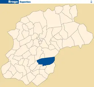 Esporões is a Portuguese freguesia ("civil parish"), located in the municipality of Braga. The population in 2011 was 1,709,[1] in an area of 4.74 km².[2]