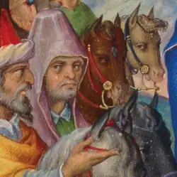 ![]() Possible self-portrait as Joseph of Arimathea, in a detail from the Crucifixion (Missal of the Academy of Sciences, c. 1616-1622) | |