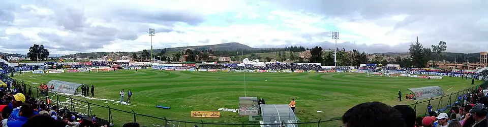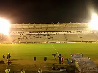 Before Boyaca Chico's 2008 Apertura league title in July 2008, the stadium's capacity was 8,000, but for the final the capacity was temporarily expanded to 12,000.[2] Also with Chico's qualification to 2009 Copa Libertadores, the stadium was due to be expanded, in order to achieve the minimum 20000 seats that CONMEBOL requires to host an international match. The expansion work started in December 2008, with a total cost of 26 million COP.[3] Despite this, the renovations were completed for the first Chicó match at La Independencia, against Brazil's Gremio in the Copa Libertadores.[4]