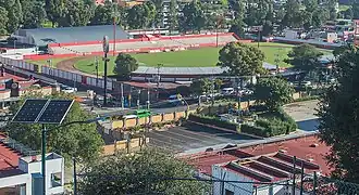 The Estadio Tlahuicole is a multi-use stadium in Tlaxcala City, Tlaxcala, Mexico. It is currently used mostly for football matches and is the home stadium for Tlaxcala F.C. The stadium has a capacity of 11,135 people. In December 2017 the stadium was demolished to give way to its reconstruction, as well as the expansion of its capacity to 15,000 spectators to comply with the Ascenso MX regulations. On 6 December 2019, the first renovation stage was opened, with these works, the stadium achieved a capacity for 12,000 spectators.[2] In October 2020, construction work began on the north and south stands to expand the capacity of the stadium to 17,000 spectators.[3]