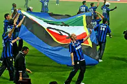On 23 March 2009, it was announced that Inter and Cambiasso had come to terms about a contract renewal, extending his contract at the club until 2014.[7] He was very important in the 2009–10 UEFA Champions League win as well, scoring the second goal of a 2–1 victory over Chelsea at the San Siro,[8] a result which ultimately helped Inter go on to win the final, 2–0, against Bayern Munich on 22 May 2010.[9] In a Champions League match against Twente on 24 November, Cambiasso scored the game's only goal, securing a place in the knockout round for the holders.[10] On 9 January 2011, Cambiasso scored twice as Inter came from a goal down to defeat Catania 2–1.[11]