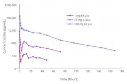 | Elimination half-life | Mean: 28 hours[4][6] Range: 18–60 hours[4] |