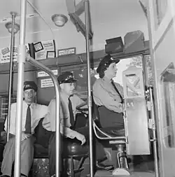 In the fall of 1942, Roy Stryker hired her as a darkroom assistant at the Office of War Information (OWI), where his photographic unit had recently been transferred from the Farm Security Administration.[1] With the encouragement of Stryker, and some of the more senior photographers, she moved to taking pictures for the OWI historical section, documenting life on the home front during the war. Her most challenging assignment was a noted series on the bus system in the Midwest and South.
