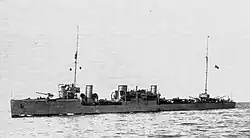 Preliminary requirements for the destroyers were defined in 1907.[3] Vessels with a displacement of up to 1,000 tons were to be powered by steam turbines, providing a speed of 35 knots. There was a strong emphasis on seaworthiness and armament, which was to include a pair of twin torpedo tubes and two 120 mm L/45 guns.[2]