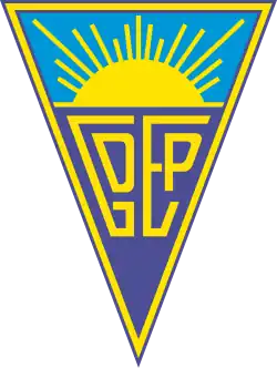 The club was founded on 17 May 1939 as Grupo Desportivo Estoril Plage by, among others, Joaquim Cardim, José Ereia, João Rebelo, Armando Vilar, Ernesto Tomás, and Joaquim Nunes.[1] The club's principal promoter was Fausto Cardoso de Figueiredo, the wealthy owner of the Lisbon-Cascais railway, the English hotels of the city, Paris and the Palace, the bath building, and the Estoril Casino.[1] The team's badge and kit colours were inspired by Estoril's many beaches, considered the best in all of Portugal. The yellow symbolizes the colour of the sun, while the blue symbolizes the colour of the neighbouring Atlantic Ocean.[1]